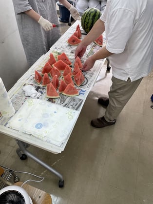 みなさん、こんにちは。こんばんは。やのです。 今日は、夏期講習中の恒例の、「スイカ」を振る舞いました。 吉良先生と僕がいつもお世話になっている”お友達”に毎年スイカをいただいております。ありがとうございます。