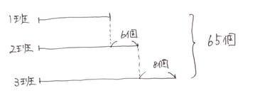 みなさん、こんにちは。こんばんは。やのです。 昨日の問題を再掲します。 ーーーーーーーーーーーーーー 問) 1班と2班と3班で、おむすびを合わせて65個作ります。2班は1班よりも6個多く作り、3班は2班よりも8個多く作ります。1班の作るおむすびは何個ですか。 ーーーーーーーーーーーーーー