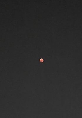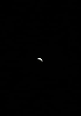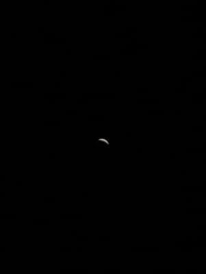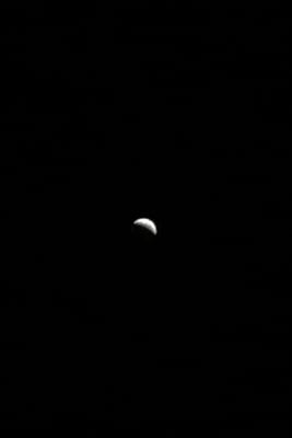 これが、約20分の成果です。月の東側(写真の左下の方)から食が始まり、満月が全て地球の影の中に入ると赤銅色になります。←ちょっとくらい理科の先生っぽくても良いですよね(苦笑)