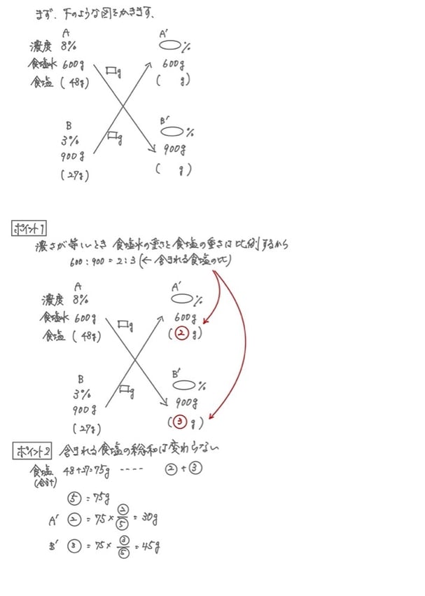1 濃度が等しいとき「食塩水の重さと含まれる食塩の重さは比例する」